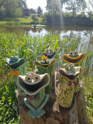 Die Frösche quaken an dem Teich